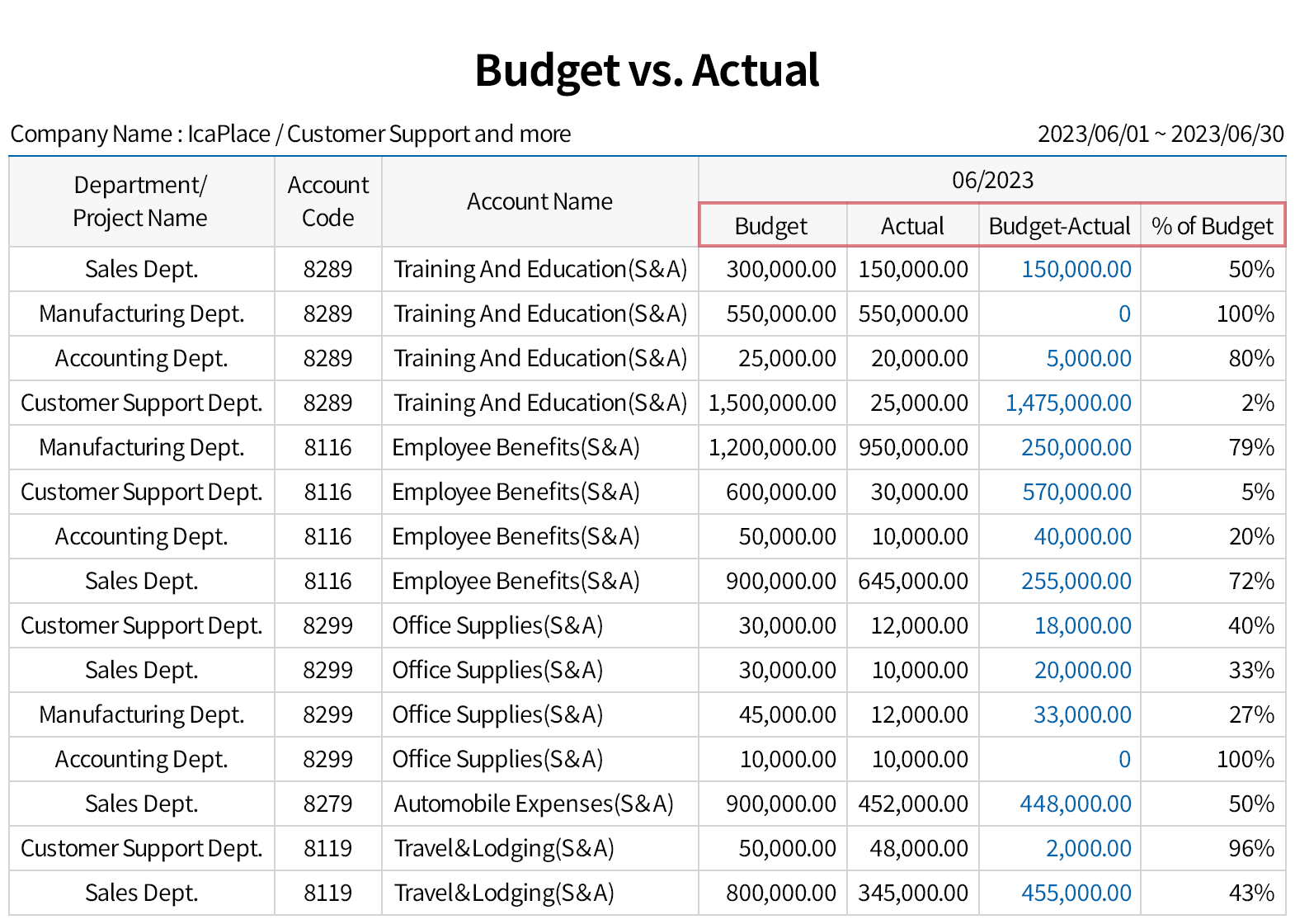 - You can allocate budgets on a monthly, quarterly, semi-annual, or annual basis by department or project.